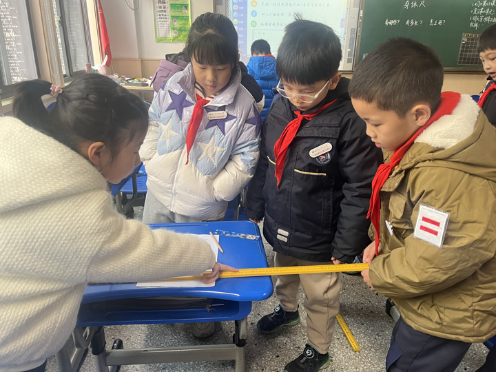 接着,老师们就本课的设计与实施展开了充分的研讨。提秀雷老师指出学生在学习过程中需要进一步感受“身体尺”和通用计量单位之间的区别与联系,能够灵活地根据实际情况进行工具的选择。朱宇辉老师充分肯定了本节课的设计与思考,并指出动手实践给学生带来了真切的、发自内心的感受,从而推动了学生之间的启发碰撞。学生能够灵活运用自己的“身体尺”设计测量活动的方案,教师通过“我探索”“我应用”“我回顾”等活动的层层递进,吸引学生开动脑筋、自主参与、全程参与,促进学生分析与解决问题能力的提升,并在交流中自发地将模糊、零散的经验清晰化、条理化、系统化,实现对个体经验的优化,进而更好地促进量感的发展。