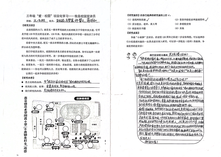 民族楼(后称行政楼)建于1936年,两层小楼,为小学高年级教室,为“振起儿童民族观念”命名为民族楼。抗战时期,日本侵略军占领学校作为日军陆军医院,将此楼阁楼改建成军人宿舍,用木板隔成一间间约八平米的小屋。1946年学校恢复后,此楼一、二楼仍作教室,后作为行政办公室和会议室。阁楼小屋作为教师宿舍,斯霞老师就曾在此住了三十年。1997年为建新教学大楼拆除。