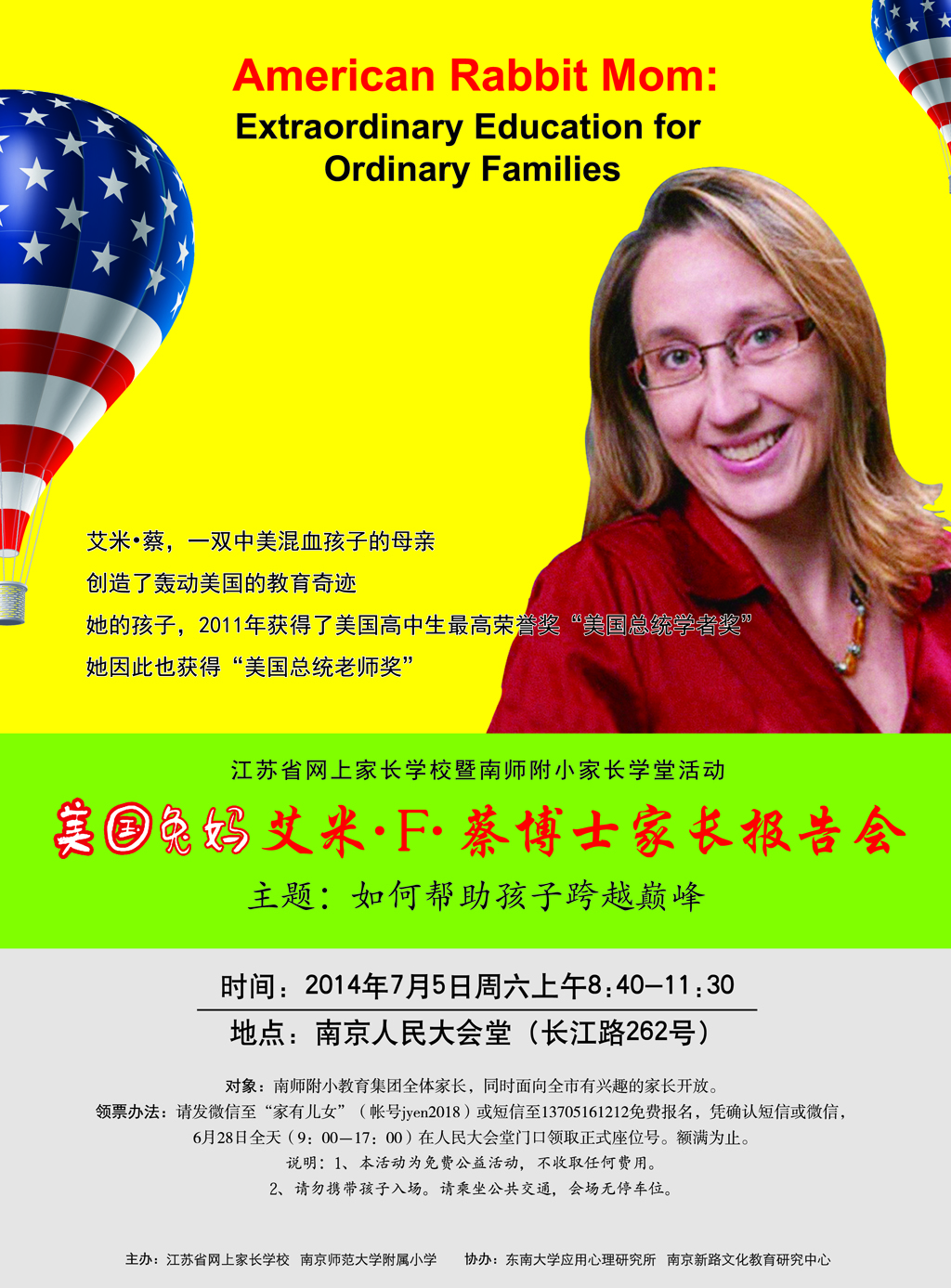 美国“兔妈”艾米·F·蔡博士南京家长报告会