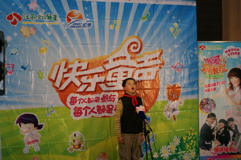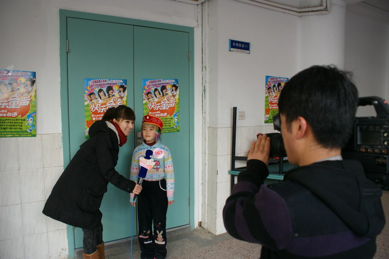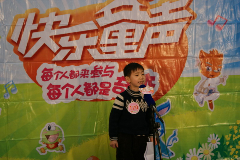 本次活动吸引了一至六年级近百位同学报名。别看在台下大家还说说笑笑,站在了台上,每一位同学都拿出了看家本领。唱歌、朗诵、配乐……一点也不含糊。虽然面对少儿频道的三位评委,面对两架摄像机,可是我们的同学信心满满,一首《沁园春 雪》让所有评委和老师连连称赞;一曲《劳动最光荣》虽然稚嫩,可是想唱就唱的愿望表达的淋漓尽致;最后一组选手更是阵容强大,一位男生,七位女生的组合,演唱的民歌《杨柳青》也博得了在场评委的阵阵掌声。
