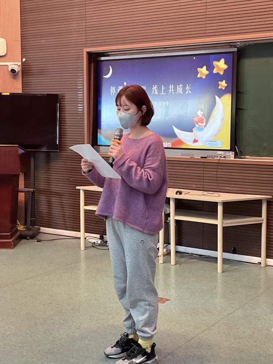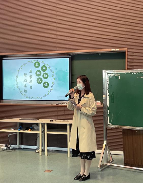 张婧文老师通过“四有”与大家交流了三年级老师们的智慧做法:集体备课有态度;设计学习任务有质量;答疑反馈有方法;通过“中华传统节日活动”、共读一本书、经典诵读使学生语文素养有提升。而“疫情中的成长”听说读写展示和“小团队闯关游戏”两个活动的开展,也在助力学生成长的同时让学生复学后的生活更加有趣味。