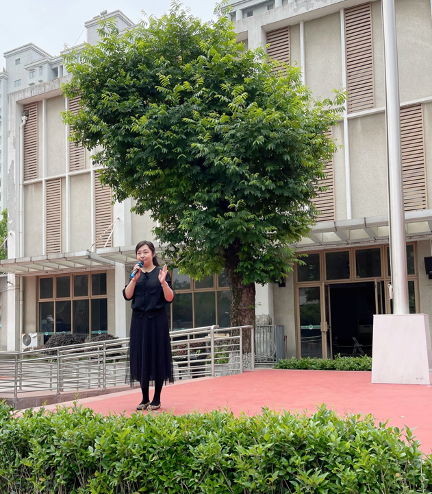 接着董艾青主任发布了演习要求:第一次警报声代表发生地震,同学们进行应急避震;第二次警报声则是疏散信号,听到信号后同学们进行疏散,快速有序地到达学校地操场。