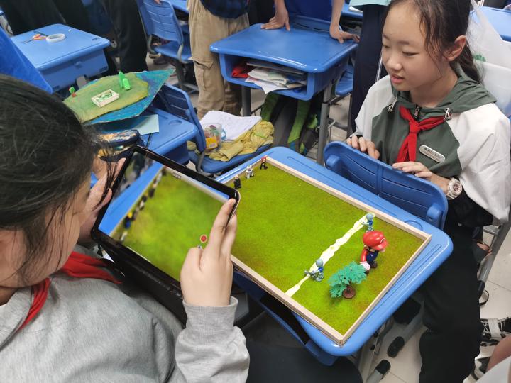 各小组的同学带着习得的知识和技能,回到自己的小组后,正式开启了微电影的拍摄。连续两周的时间,同学们集体商议确定微电影主题、设计拍摄脚本、准备制作材料、打造拍摄场景、拍摄分镜头、剪辑组合视频、后期处理……每位团队成员都认真努力地践行着自己的创造与梦想、思考与实践,通过分工与合作,成就带有附小儿童特质的作品。