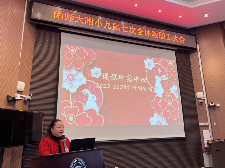张岚校务委员代表课程研究中心作了计划宣讲。坚守斯霞老师“轻负高效”教育主张。继续以“三小”落实为抓手,培育学生协同发展的良好生态。小研究迭代,实现“研之有理”“研之有用”“研之有进”。小游戏优化,注重活动化、游戏化、生活化。小伙伴深化,走向更主动、更多维、更全面。以课程综合化实施为目标,创生具有附小特质的跨学科学习实践,着力培养学生的综合性思维和实践创新能力。丰满“爱的评价”体系,推动全面育人、全景管理、全科推进的“三维六环”作业管理体系持续运行,促进每一位学生全面成长。