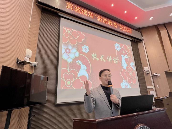 最后,周卫东校长进行了主题发言。他对各部门的工作计划报告进行了评价,简单回顾了新学期前附小团队所做的大量而卓有成效的工作,赞扬附小团队长期形成的精神品格。随后,周校长围绕“提质跨学科主题学习”“提高教学六认真质量”“提速教师队伍建设”“提升专业写作水平”“提振安全防范意识”等方面的工作进行了专业且诚挚的指导,指出了过往工作的提升点,高屋建瓴地为附小的高质量发展指引了明确方向。与会教师深受启发,信心满怀。